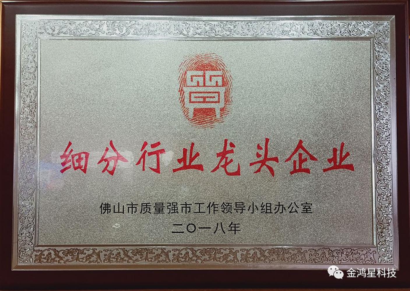 近日,佛山市質(zhì)量強(qiáng)市工作領(lǐng)導(dǎo)小組辦公室公示了“細(xì)分行業(yè)龍頭企業(yè)”入選名單。這是佛山金鴻星智能科技有限公司繼“國(guó)家高新技術(shù)企業(yè)”、“廣東省守合同重信用企業(yè)”之后獲得的又一項(xiàng)重大榮譽(yù)!