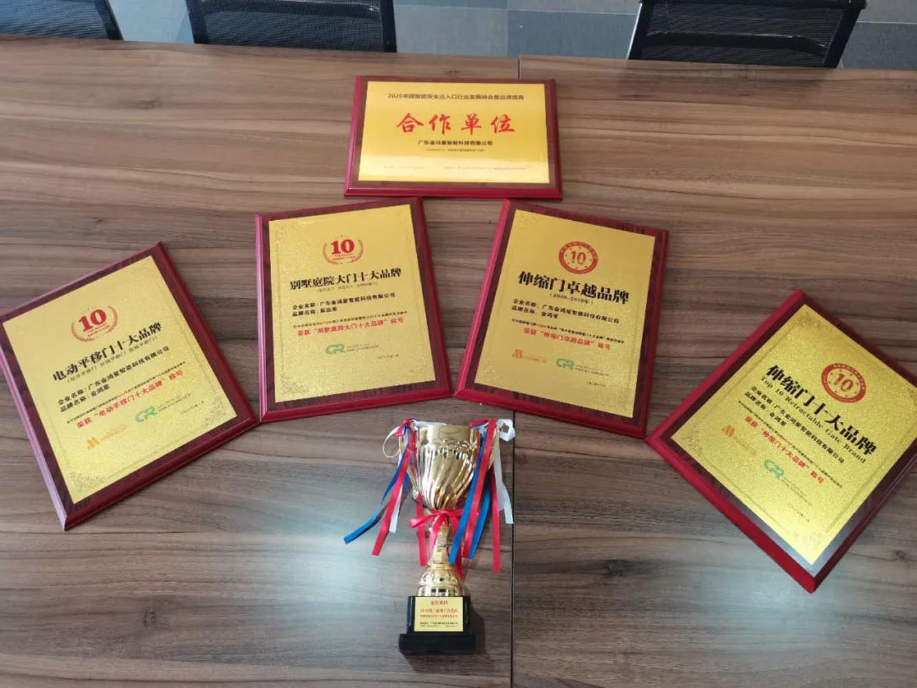 峰會上,廣東金鴻星智能科技有限公司榮獲中出網(wǎng)-出入口設(shè)備行業(yè)門戶合作單位。在中國伸縮門網(wǎng)舉辦的評選活動中,我公司一舉斬獲“伸縮門卓越品牌”、“伸縮門十大品牌”、“電動平移門十大品牌”“別墅庭院門十大品牌”等獎項,載譽而歸。