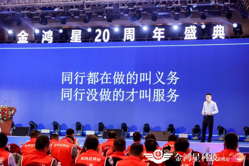 美酒佳肴金杯玉盞,金董黃總帶著公司高管與全國各地的經(jīng)銷商、供應(yīng)商以及各界同仁朋友們共同舉杯,迎接金鴻星的20周年。