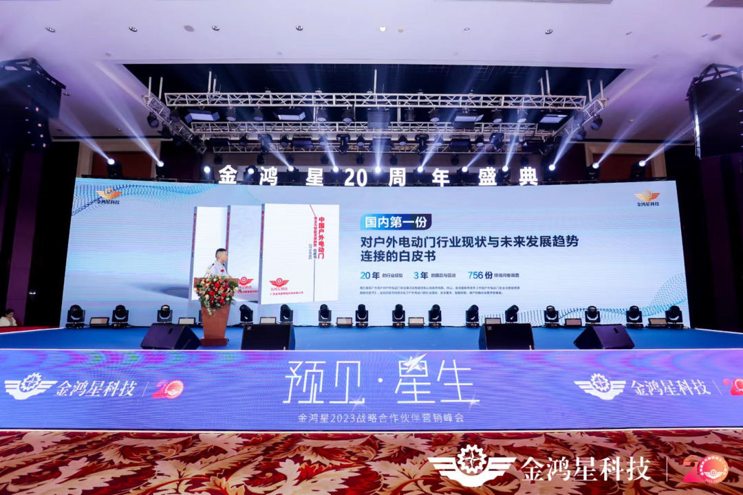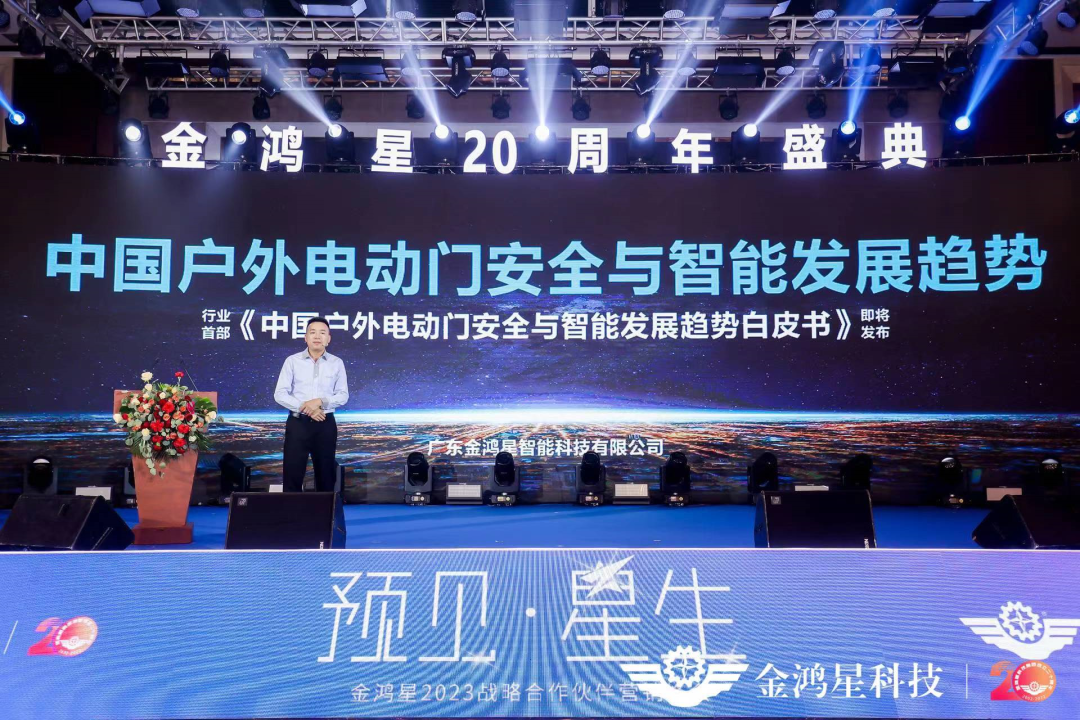金鴻星董事長金國建先生為我們發(fā)表《中國戶外電動(dòng)門安全與智能發(fā)展趨勢》的主題分享,并于率先在行業(yè)關(guān)于24V安全電壓驅(qū)動(dòng)以及智能控制系統(tǒng)的全系列標(biāo)配啟動(dòng)儀式,同時(shí)邀約中國建筑金屬結(jié)構(gòu)協(xié)會(huì)潘冠軍副秘書長、中國建筑金屬結(jié)構(gòu)協(xié)會(huì)自動(dòng)門電動(dòng)門分會(huì)戴建國副會(huì)長、中出網(wǎng)CEO李明發(fā)先生以及客戶代表出席啟動(dòng)儀式。